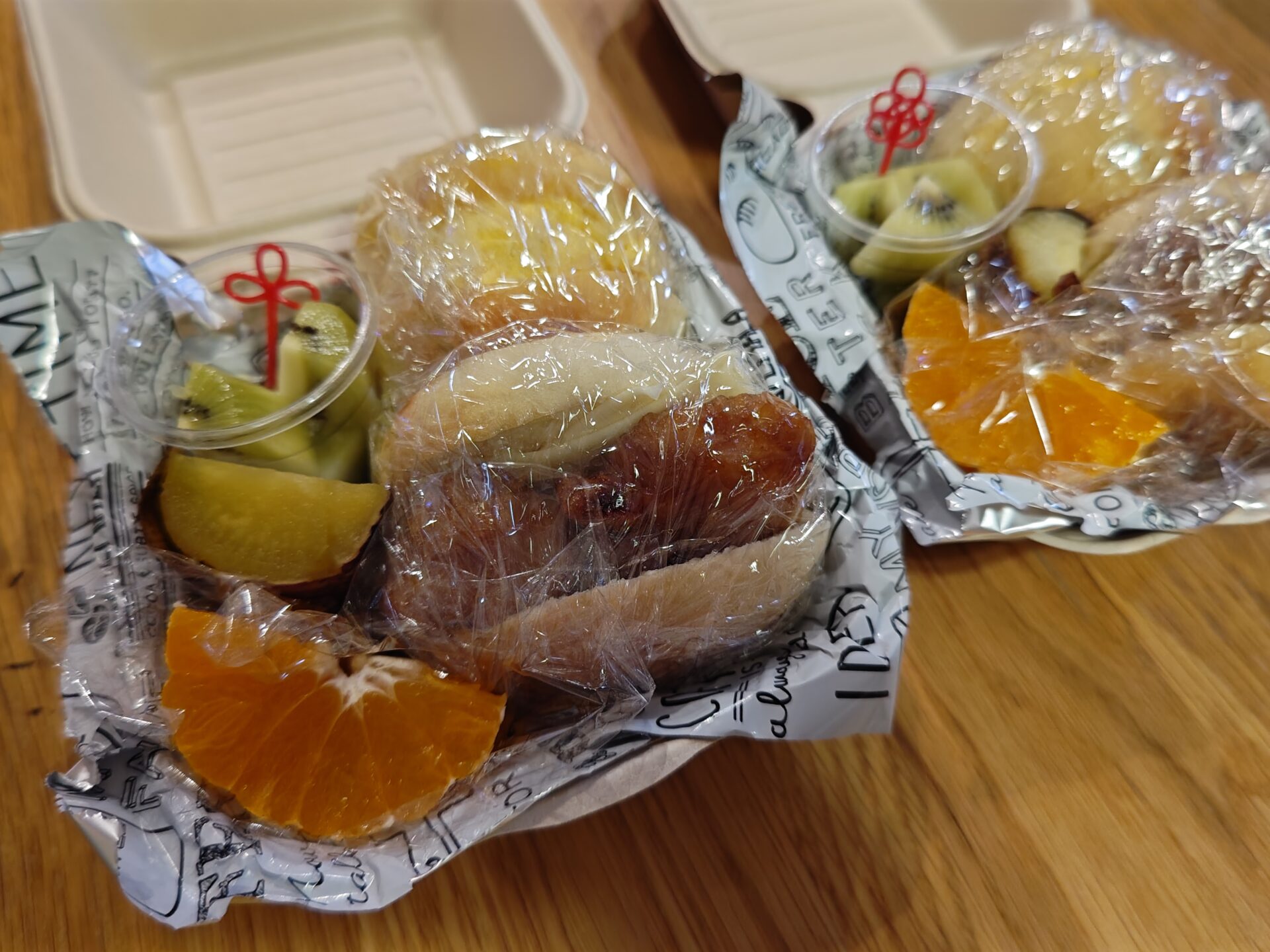 今日はサンドイッチと果物です。